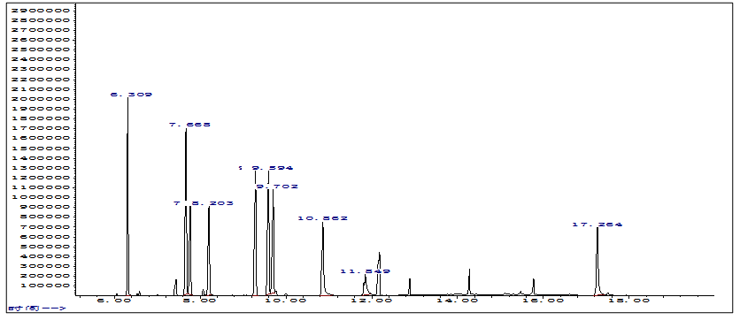 圖3. 20.0 μg/mL標(biāo)樣過柱GC/MS色譜圖